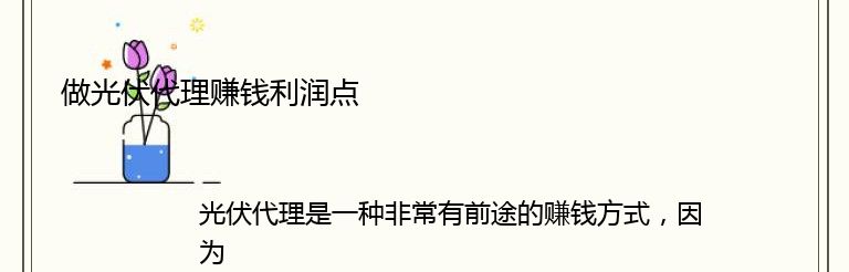 总之,光伏代理是一个非常有前途的赚钱方式,你可以从光伏产品的销售、安装和维护以及**的补贴中获得利润。如果你对光伏产业感兴趣,不妨考虑成为一名光伏代理,开启你的创业之路。