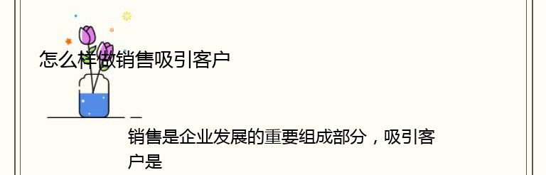 总之,怎么样做销售才能吸引客户,需要注重客户需求,提供优质服务,建立良好的口碑,提供优惠活动等方面。只有这样,才能吸引更多的客户,提升销售业绩。