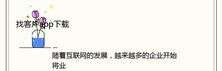 找客户app的下载非常简单,只需要在应用商店中搜索“找客户”即可。目前,该应用程序已经在各大应用商店上线,包括苹果应用商店、华为应用市场、小米应用商店等等。用户可以根据自己的手机型号和操作系统版本选择相应的下载方式。