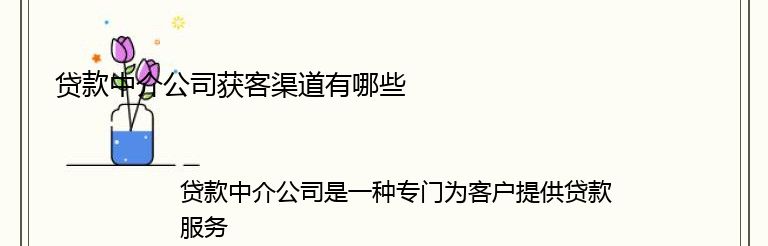 贷款中介公司是一种专门为客户提供贷款服务的机构,其主要业务是为客户提供贷款咨询、申请、审批等服务。为了吸引更多的客户,贷款中介公司需要通过多种渠道来获取客户。