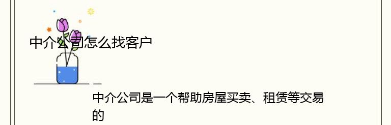 中介公司是一个帮助房屋买卖、租赁等交易的中间人。为了让中介公司能够获得更多的客户,以下是一些方法: