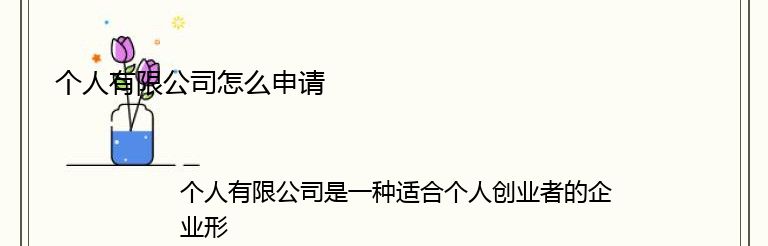 个人有限公司是一种适合个人创业者的企业形式,它具有独立法人资格,可以享受企业所得税优惠政策,同时也可以有效地保护个人财产不受企业债务的影响。那么,个人有限公司怎么申请呢?