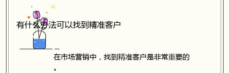 在市场营销中,找到精准客户是非常重要的。只有找到了精准客户,才能更好地推销产品或服务,提高销售额。那么,有什么办法可以找到精准客户呢?以下是几种方法: