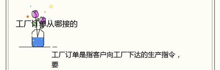 工厂订单是指客户向工厂下达的生产指令,要求工厂按照客户的要求生产产品。工厂订单的来源有很多种,下面就来介绍一下工厂订单从哪里接。
