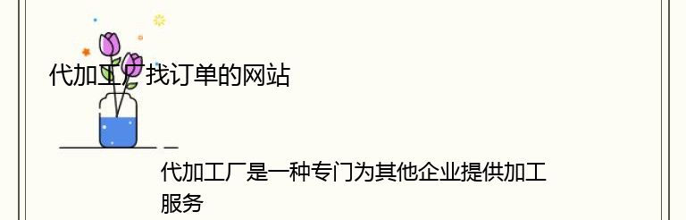 总之,代加工厂要想保持良好的运营状态,就必须不断地寻找订单。通过寻找订单的网站,代加工厂可以更加方便地找到符合自己要求的订单,提高自己的生产效率和收入水平。