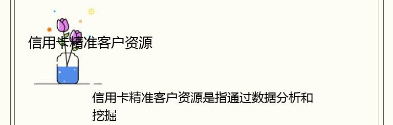 信用卡精准客户资源是指通过数据分析和挖掘,筛选出符合一定条件的潜在信用卡客户,这些客户具有较高的信用评级、稳定的收入来源、良好的信用记录等特点,是信用卡营销中非常重要的资源。