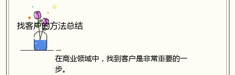 4. 口碑营销:口碑营销是一种非常有用的方式,可以帮助您找到潜在客户。通过向您的现有客户推荐您的产品或服务,您可以吸引更多的潜在客户。此外,您还可以利用社交媒体和其他渠道来扩大您的口碑,以便更好地吸引潜在客户的注意力。
