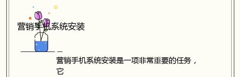 总之,营销手机系统安装是一项非常重要的任务,需要认真对待。只有选择适合自己企业的营销手机系统,选择合适的时间和地点进行安装,并选择一家专业的服务商进行操作,才能达到预期的效果。