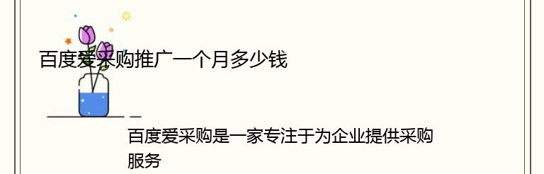 百度爱采购是一家专注于为企业提供采购服务的平台,其推广费用也是企业关注的重点之一。那么,百度爱采购推广一个月需要多少钱呢?