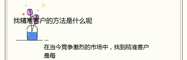 在当今竞争激烈的市场中,找到精准客户是每个企业都必须面对的问题。然而,如何找到这些客户并与他们建立联系,是一个需要深入思考和研究的问题。