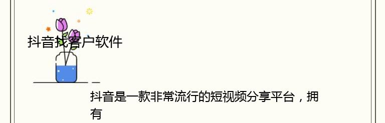 总之,抖音找客户软件可以帮助企业快速找到潜在客户,提高营销效率。但是,企业在选择软件时需要注意以上几个方面,选择一款适合自己的软件。