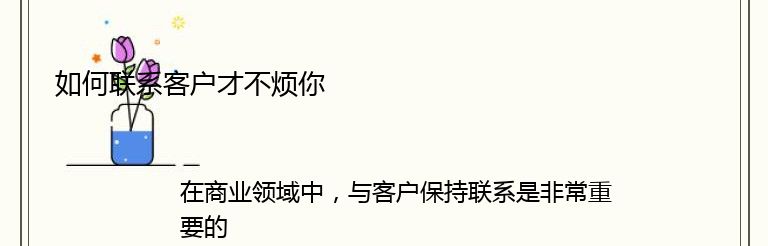 总之,与客户保持联系是非常重要的,但是你需要确保你的联系方式不会烦扰他们。通过了解客户的需求,提供有价值的信息,并尊重客户的时间,你可以建立更好的关系,并获得更多的业务。