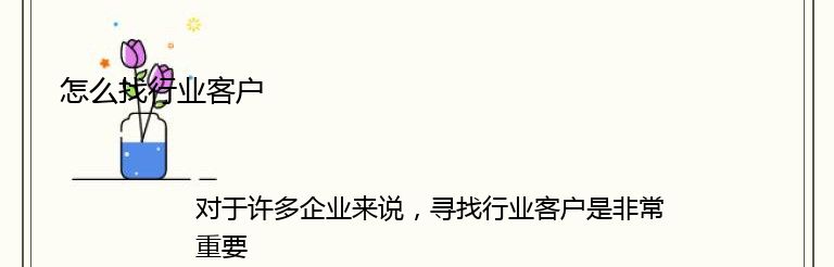 对于许多企业来说,寻找行业客户是非常重要的。这些客户通常是具有高度专业知识和经验的人,他们可以为企业提供更高质量的服务和产品。但是,如何找到这些客户呢?以下是一些方法:
