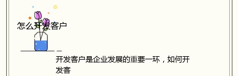 开发客户是企业发展的重要一环,如何开发客户是每个企业都需要思考的问题。以下是一些关于如何开发客户的建议: