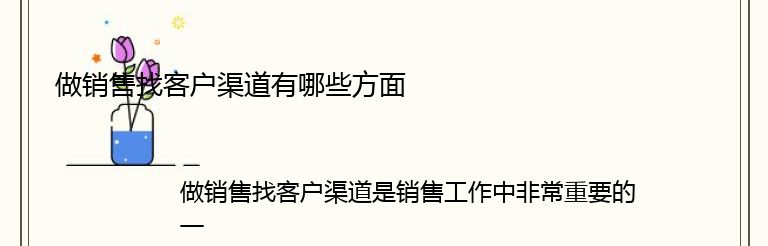 做销售找客户渠道是销售工作中非常重要的一环,它直接关系到销售业绩的好坏。以下是几个方面的客户渠道: