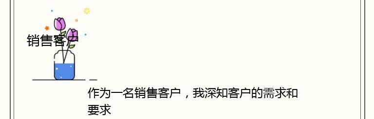 作为一名销售客户,我深知客户的需求和要求是我们工作的重点。在销售过程中,我们需要不断地了解客户的需求,提供专业的建议和服务,以满足客户的需求。