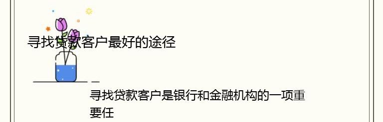 寻找贷款客户是银行和金融机构的一项重要任务。这些机构需要找到可靠的客户,以便向他们提供贷款和其他金融服务。以下是寻找贷款客户最好的途径: