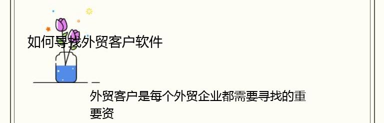 总之,寻找外贸客户是一个需要耐心和技巧的过程,企业可以根据自己的需求和预算选择适合自己的软件和平台来进行推广和营销。同时,企业还需要不断优化自己的产品和服务,提高客户满意度和口碑,才能真正赢得客户的信任和支持。