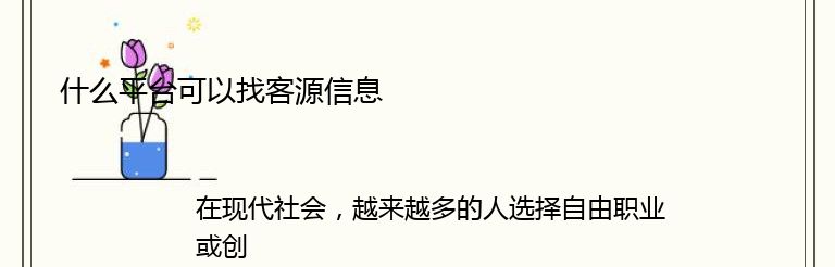 在现代社会,越来越多的人选择自由职业或创业,而找到客源信息是他们成功的关键之一。那么,什么平台可以帮助自由职业者和创业者找到客源信息呢?