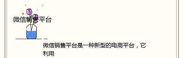 微信销售平台是一种新型的电商平台,它利用微信这一社交媒体平台的强大传播力和用户基础,为商家提供了一个全新的销售渠道。相比传统的电商平台,微信销售平台更加注重社交化和个性化,让消费者更加方便地购买到自己喜欢的商品。