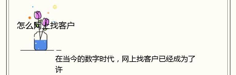 在当今的数字时代,网上找客户已经成为了许多企业和个人营销的重要手段。但是,如何在海量的信息中找到潜在客户,成为了许多人的难题。下面,我们来分享一些网上找客户的方法。