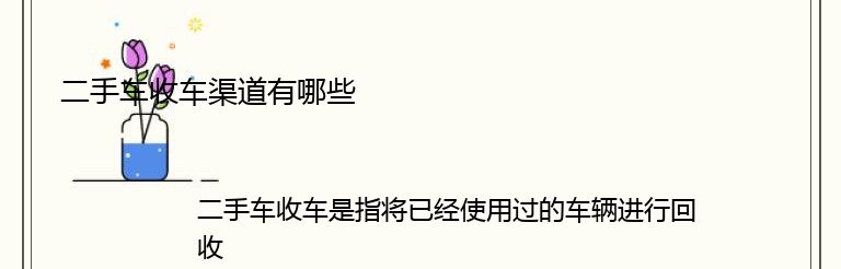 二手车收车是指将已经使用过的车辆进行回收,然后进行二次销售的过程。随着二手车市场的不断扩大,二手车收车渠道也越来越多。下面就为大家介绍一些常见的二手车收车渠道。