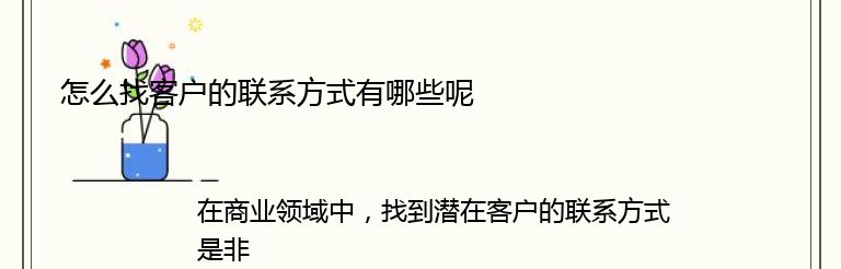 总之,找到客户的联系方式是一个非常重要的任务,可以帮助你与客户建立联系,促进销售和业务发展。通过使用上述方法,你可以轻松地找到客户的联系方式,并与他们建立联系。