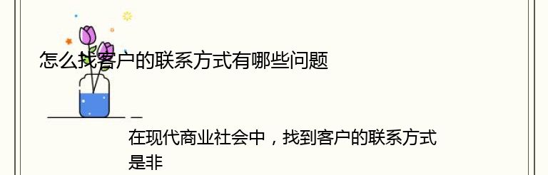 在现代商业社会中,找到客户的联系方式是非常重要的一步。然而,这个过程并不总是那么简单,因为有许多问题需要解决。以下是一些常见的问题: