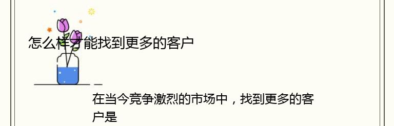 总之,找到更多的客户是一个需要不断努力的过程。企业需要制定一个明确的营销计划,并利用各种方法来吸引潜在客户。通过不断地努力和改进,企业可以找到更多的客户,并实现业务增长。