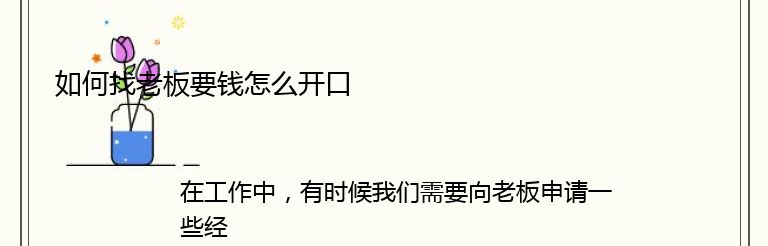在工作中,有时候我们需要向老板申请一些经费或者预算,但是开口向老板要钱却是一件让人感到尴尬的事情。那么,如何找老板要钱呢?