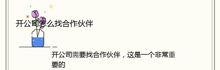 开公司需要找合作伙伴,这是一个非常重要的环节。合作伙伴的选择将直接影响公司的发展和未来。那么,如何找到合适的合作伙伴呢?以下是一些建议: