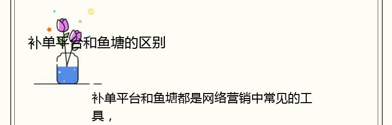 补单平台和鱼塘都是网络营销中常见的工具,但它们的功能和使用方式有所不同。