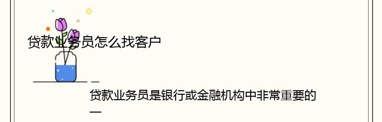贷款业务员是银行或金融机构中非常重要的一环,他们的主要职责是为客户提供贷款服务。但是,如何找到潜在的客户是贷款业务员必须要掌握的技能之一。