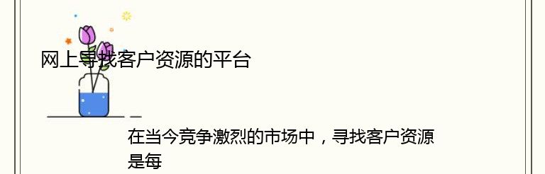 在当今竞争激烈的市场中,寻找客户资源是每个企业都必须面对的问题。而随着互联网的发展,越来越多的企业开始利用网络平台来寻找客户资源。下面介绍几个常用的网上寻找客户资源的平台。
