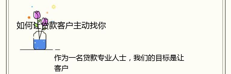作为一名贷款专业人士,我们的目标是让客户主动找到我们,而不是我们不断地去寻找客户。那么,如何让贷款客户主动找你呢?以下是一些有效的方法: