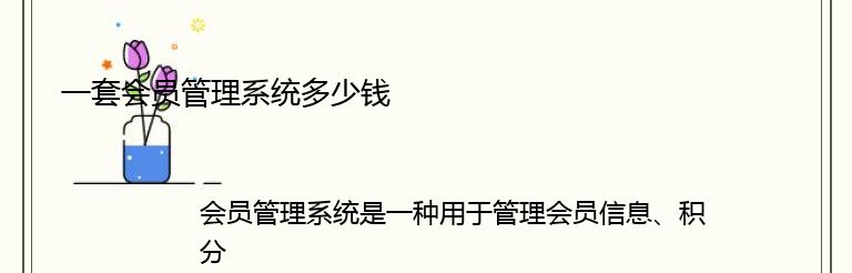 总的来说,一套会员管理系统的价格是比较灵活的,需要根据具体的需求来确定。如果你需要购买一套会员管理系统,建议先了解市场上的价格水平,再根据自己的实际情况进行选择。