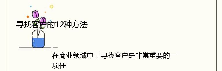 以上是12种寻找客户的方法,企业可以根据自身情况选择适合自己的方法,不断地寻找新的客户,保持业务的发展。