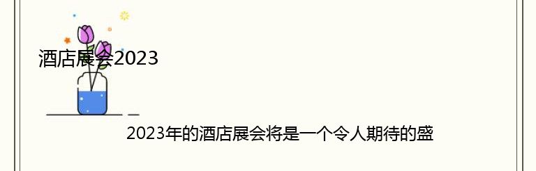 总之,2023年的酒店展会将是一个不容错过的盛会。无论您是酒店业的从业者还是酒店业的爱好者,这个展会都将为您提供一个难得的机会,了解最新的酒店技术、服务和设计,与行业领袖交流,拓展您的业务和人脉。