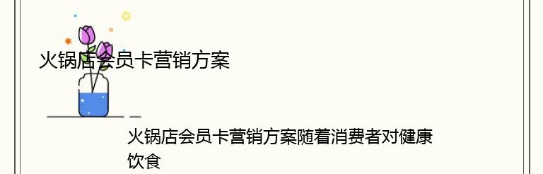 总之,会员卡营销方案是一种非常有效的方式,可以提高消费者的忠诚度和消费频率,同时也可以增加火锅店的收入。火锅店可以根据自身情况和消费者需求,制定不同的会员卡营销方案,以达到最佳效果。