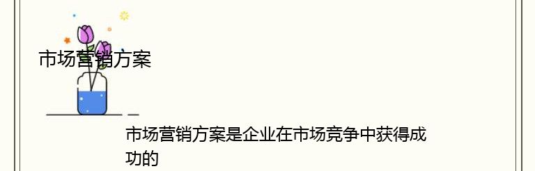 市场营销方案是企业在市场竞争中获得成功的关键之一。一个好的市场营销方案可以帮助企业提高品牌知名度、增加销售额、拓展市场份额。以下是一个简单的市场营销方案: