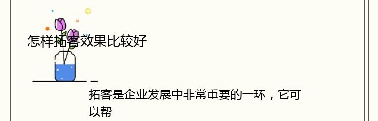 拓客是企业发展中非常重要的一环,它可以帮助企业扩大市场份额,增加销售额,提高品牌知名度。但是,怎样拓客效果比较好呢?以下是一些建议: