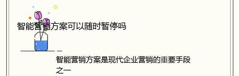智能营销方案是现代企业营销的重要手段之一,它可以帮助企业更好地推广产品和服务,提高销售业绩。然而,在实施智能营销方案时,企业需要考虑到方案的灵活性和可控性,以便在需要时随时暂停方案。