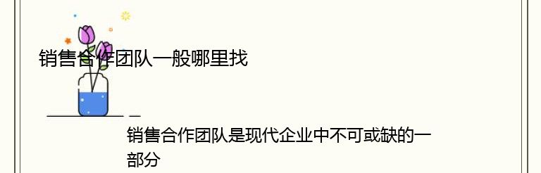 销售合作团队是现代企业中不可或缺的一部分,它是由一群专业的销售人员组成的团队,旨在通过协作和合作来实现销售目标。那么,一般来说,我们可以在哪里找到这样的销售合作团队呢?