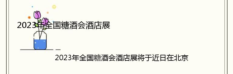 总之,2023年全国糖酒会酒店展将是一场不容错过的盛会,让我们一起期待这场展览会的到来!