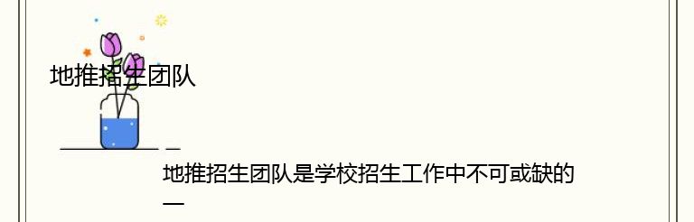 地推招生团队的工作需要具备一定的专业知识和技能,他们需要了解学校的招生政策和招生计划,掌握学校的专业设置和教学特色,熟悉学校的历史和文化,以便更好地向学生和家长介绍学校。同时,他们还需要具备良好的沟通能力和服务意识,能够与学生和家长建立良好的关系,为他们提供专业的咨询和服务。