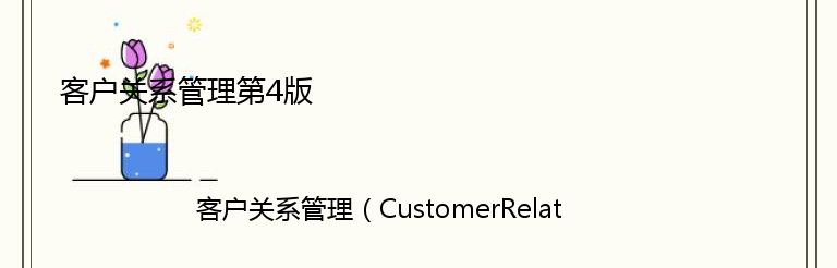 《客户关系管理第4版》是一本系统介绍CRM理论和实践的专业书籍。该书从CRM的基本概念、发展历程、实施步骤、技术支持等方面进行了详细阐述,旨在帮助企业了解CRM的核心思想和实践方法,提高客户满意度和忠诚度。