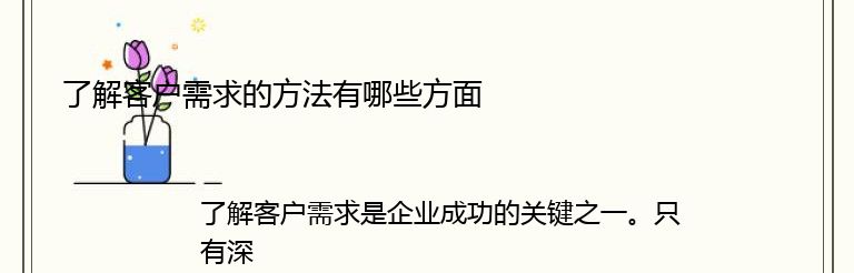 了解客户需求是企业成功的关键之一。只有深入了解客户的需求,才能提供他们真正需要的产品和服务。以下是了解客户需求的方法: