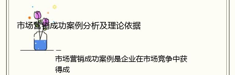 市场营销成功案例是企业在市场竞争中获得成功的重要标志。其中,成功的案例不仅能够为企业带来巨大的商业价值,还能够为其他企业提供宝贵的经验和启示。下面,我们将以一家知名企业的市场营销成功案例为例,分析其背后的理论依据。