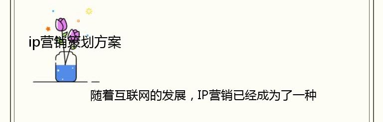 随着互联网的发展,IP营销已经成为了一种非常流行的营销方式。IP营销是指利用知名度较高的人物、品牌、事件等作为营销的核心,通过与其合作或者借助其影响力来推广产品或服务。下面是一份IP营销策划方案,希望能够为您的营销活动提供一些参考。