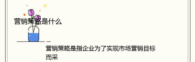 营销策略是指企业为了实现市场营销目标而采取的一系列有计划、有组织、有针对性的活动和手段。营销策略的制定需要考虑市场环境、竞争对手、产品特点、消费者需求等多方面因素。